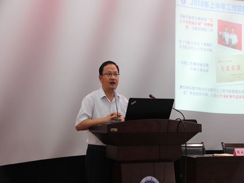 全体教职工齐心协力,有效地促进了各项工作的按期推进,取得了优异的成绩。在2018年,学院取得了重大成就,其中包括获得国家科技进步奖2项、地理信息科技进步奖一等奖1项、二等奖2项、环境工程顺利通过教育部专业认证、环境生态学ESI贴近度达到72%以及院党委被评为2016-2018年度先进党委等。随后,张绍良院长对下学期的学科建设、人才培养、科学研究等工作进行了部署,提出做好新一轮岗位聘任工作,完善考核制度、推进“中非国际合作研究中心”建设工作、启动测绘工程第二轮认证工作等具体措施。他还重点指出,学院要积极推进“双一流”学科和向ESI一流学科建设工作的奋斗方向。