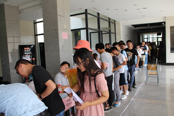18届毕业生按照指示牌排队依次领取离校通知单、注销学生证、打印党员/团员转组织关系证明、领取毕业证、学位证、上交离校通知单,现场秩序井然。工作人员秉着积极热情的服务态度,细致入微地为每一位毕业生办理相关手续,并耐心地对一些特殊情况进行协调,使工作井然有序的进行着,这为每一位毕业生提供了方便,受到广大毕业生的一致好评,工作现场气氛十分融洽。小宝寻花