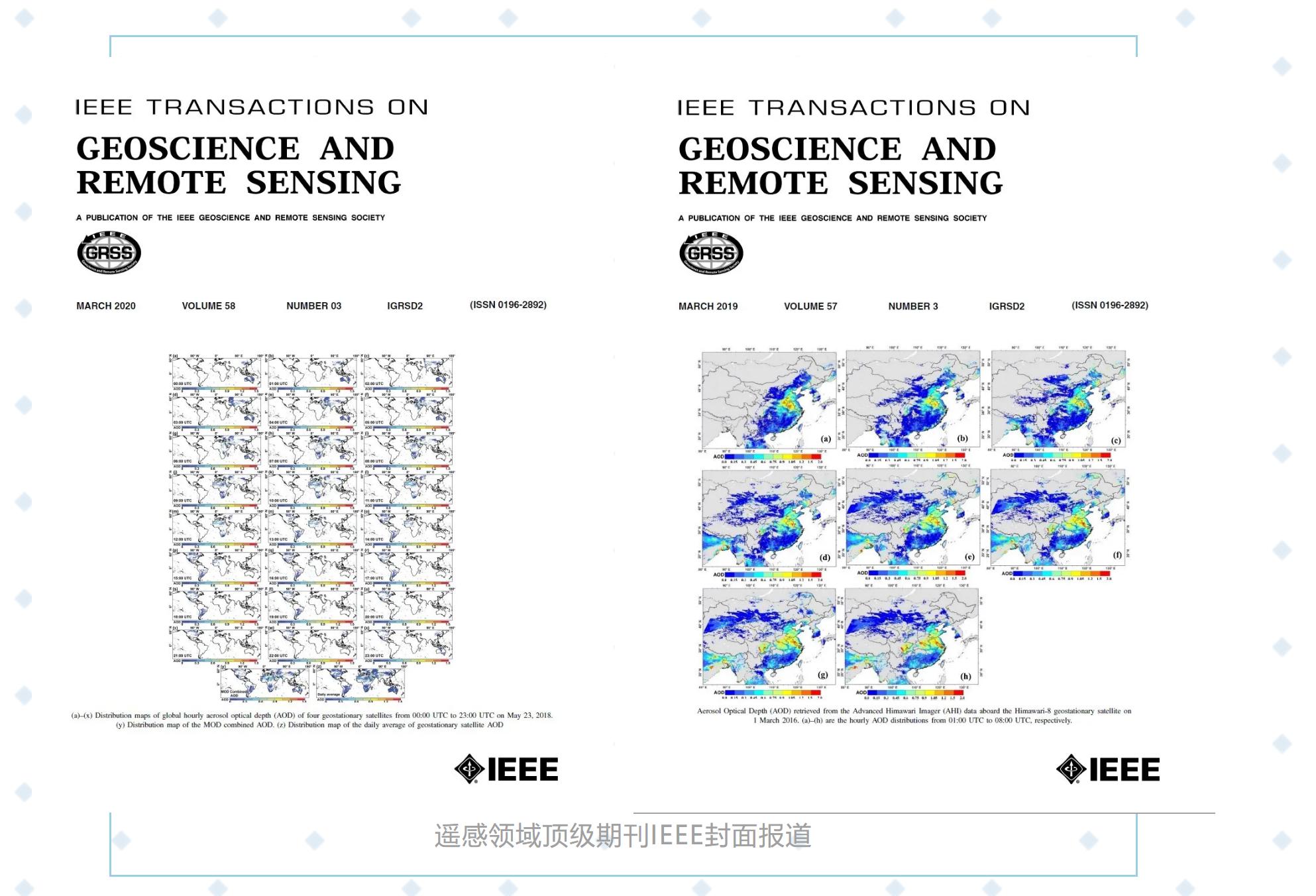 气溶胶光学深度(AOD)数据集是衡量气溶胶辐射效应、研究大气状况时空分布、总量及其对全球气候影响的重要参数,是当前大气科学领域重要议题。使用极地轨道卫星高频率监测全球气溶胶分布受到卫星数量和卫星扫描宽度(由卫星的视场和高度决定)的限制,无法满足高时间分辨率的大气环境观测需求。虽然地球静止卫星具有较高时空分辨率和较广观测范围,但要实现对气溶胶的全球监测,还有很多未能解决的问题。我校测绘学科国际欧亚科学院院士薛勇教授课题组与国内外高校合作,研究成果Joint Retrieval of Aerosol Optical Depth and Surface Reflectance Over Land Using Geostationary Satellite Data和Deriving a Global and Hourly Data Set of Aerosol Optical Depth Over Land Using Data From Four Geostationary Satellites: GOES-16, MSG-1, MSG-4, and Himawari-8分别于2019年和2020年在遥感领域顶级期刊“IEEE Transactions on Geoscience and Remote Sensing”封面报道。