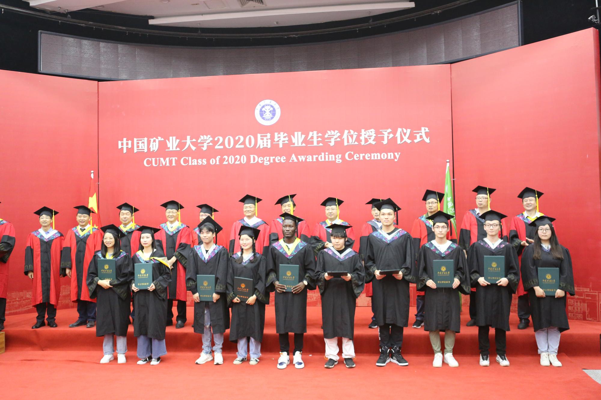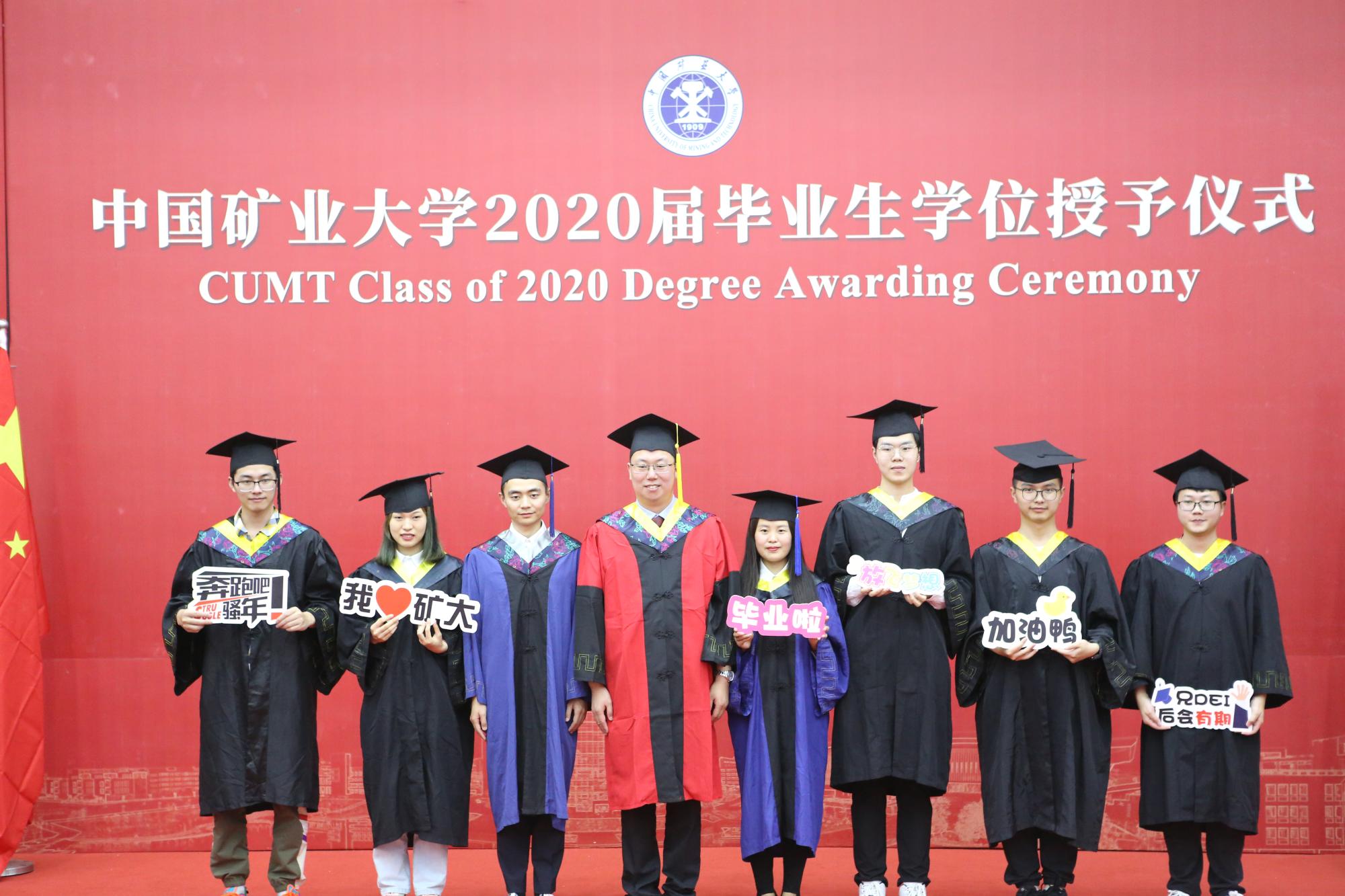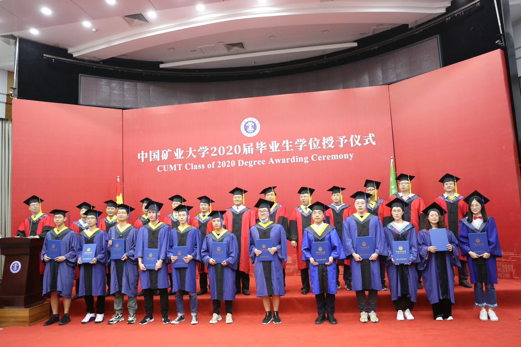 副校长卞正富教授、教务部部长张绍良教授,学院郑南山教授、汪云甲教授、高井祥教授、胡振琪教授、吴侃教授、汪应宏教授、冯启言教授、郭广礼教授、张书毕教授、田立江教授为毕业生拨苏正冠、颁发学位证书,并同他们合影留念。授予仪式由学院教学副院长周来主持。
