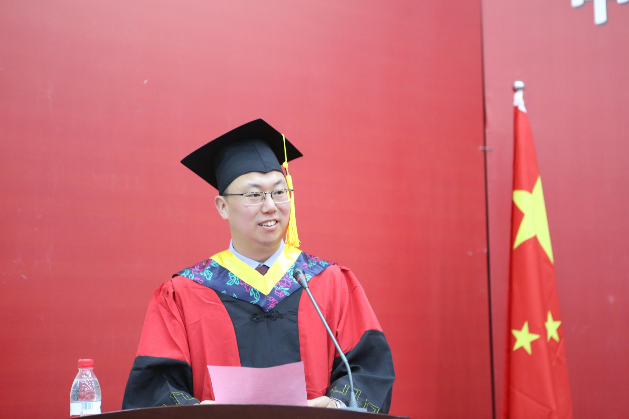 周来副院长表示此次盛大而具有纪念意义的学位授予仪式,旨在让每一名即将迈出校园的毕业生切实感受到母校的重视、关爱和祝福,增强学生对学校和学院的认同感、归属感。他期待着毕业生们在新的起跑线上继续以勤奋求实、进取奉献的精神开创亮丽丰满的美好未来。