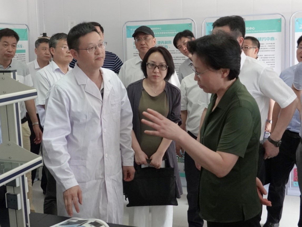 邢春宁副主任一行实地考察了江苏省老工业基地资源利用与生态修复协同创新中心与矿山生态修复教育部工程研究中心的实验场地,就实验室废水处理、土壤修复技术、科研成果及应用情况等进行了解。