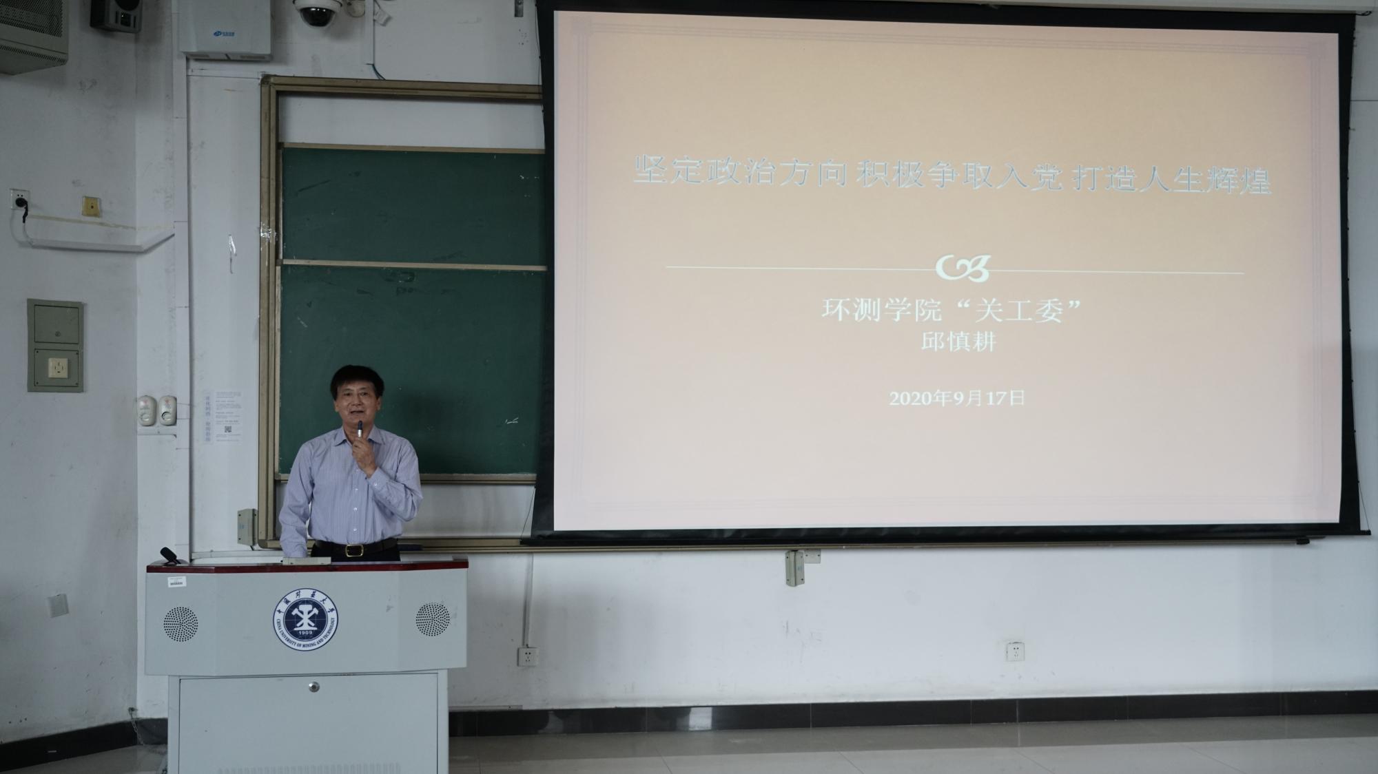 讲座伊始,邱慎耕老师从自身的入党经历和入党动机出发,讲起了大学生入党的意义,并要求同学们珍惜大学期间发展党员的机会,积极向党组织靠拢,努力实现自己的人生价值。接着,邱老师讲起了中国共产党发展党员的过程,以及对党员同志的要求,同时,他跟同学们分享了中国共产党各级党组织的相关知识。最后,邱老师给同学们解答了几道思考题:值不值得入党,决定何时入党,需要有怎样的行动。