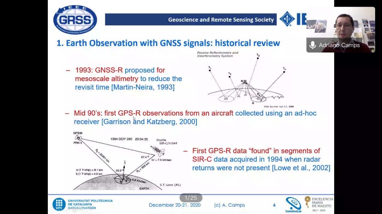 Adriano Camps教授是依托我校建立的“天空地井协同感知空间信息学科创新引智基地”的外国专家。加泰罗尼亚理工大学纳米卫星实验室(NanoSat Lab)主任。IEEE Fellow, IEEE Geoscience and Remote Sensing Society(IEEE GRSS)学会Administrative Committee(AdCom)中的重要成员。并于2017和2018年担任IEEE GRSS主席。曾担任IGARSS 2007技术计划委员会主席和IGARSS 2020总联合主席;Radio Science和IEEE Geoscience and Remote Sensing Letters的副主编,目前担任遥感与地学学科国际顶级期刊IEEE Transactions on Geoscience and Remote Sensing的副主编。
