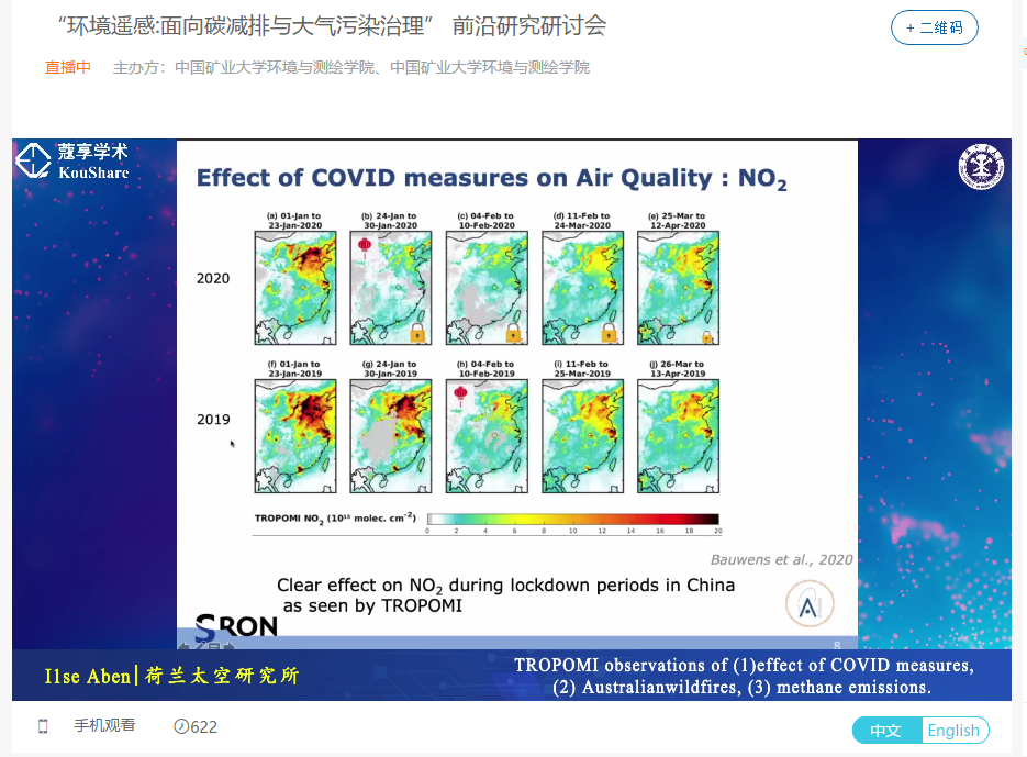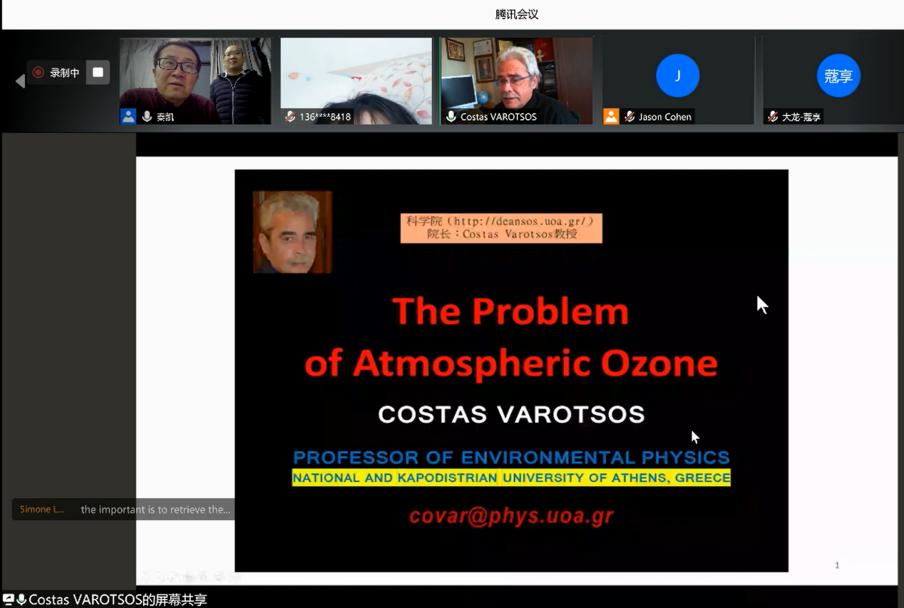 通过在线方式召开了“环境遥感:面向碳减排与大气污染治理”前沿研究研讨会。会议由薛勇教授和Jason Cohen教授共同担任主持,邀请到了新加坡国立大学Jeff Obbard教授、荷兰太空研究所Ilse Aben教授、意大利国家研究理事会环境分析方法研究所Simone Lolli教授、希腊国立雅典大学Costas Varotsos教授等四位学者。分别就气候变化、S5P/TROPOMI卫星遥感、气溶胶遥感、臭氧等议题做了精彩报告。Jeff Obbard教授介绍了全球变暖的基本事实、应对办法以及对卫星遥感观测的需求。Ilse Aben教授介绍了欧空局负责的大气成分高光谱遥感卫星S5P/TROPOMI最近进展,并就S5P/TROPOM监测到的新冠疫情期间和澳大利亚森林火灾引起的大气成分变化、山西煤矿的甲烷排放等介绍了其领导的课题组取得的最新进展。Simone Lolli教授介绍了主被动遥感观测反演气溶胶的相关技术及其在大气污染监测中的应用。Costas Varotsos教授介绍了其长期从事的臭氧观测与机制研究,包括南极臭氧空洞及其对流层臭氧污染等。