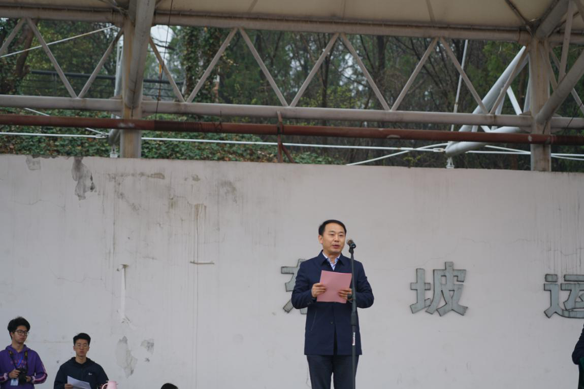 本科生、研究生、教职工方队依次入场,同时各班级还依次进行了风采展示。随后,执行院长郑南山致开幕词,他首先回顾了学院在各类体育赛事中取得的优秀成绩,并强调运动的重要性,希望全体师生“每天锻炼一小时,健康工作五十年,幸福生活一辈子”。最后,郑南山院长激励大家在赛事中展现自身的风采与精神,并表示希望参赛者、裁判工作人员发扬比赛精神,取得优异成绩。在裁判员代表贾世官同学和运动员代表先宇玺同学分别宣誓后,院工会主席刘汉湖宣布运动会正式开幕。