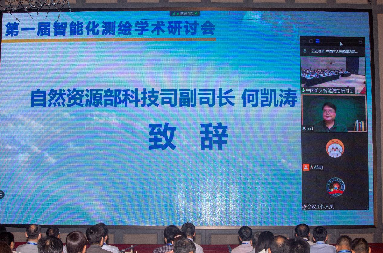 自然资源部科技司副司长何凯涛博士致辞。他指出测绘科学技术在自然资源领域非常重要,新时期发展智能化测绘势在必行。他表示将积极支持推进智能化测绘发展,希望本次研讨会能够有效推动新型测绘数字赋能,构建新的科学基础。