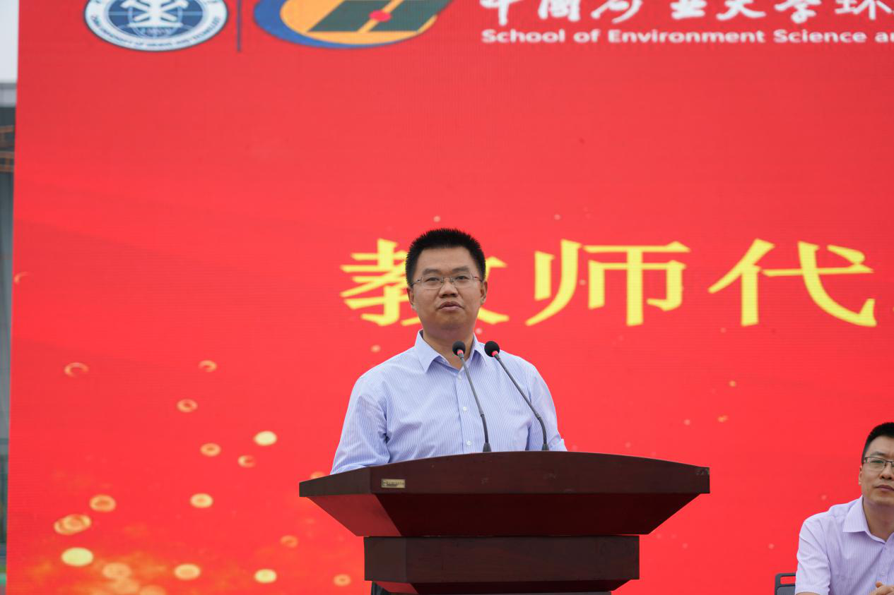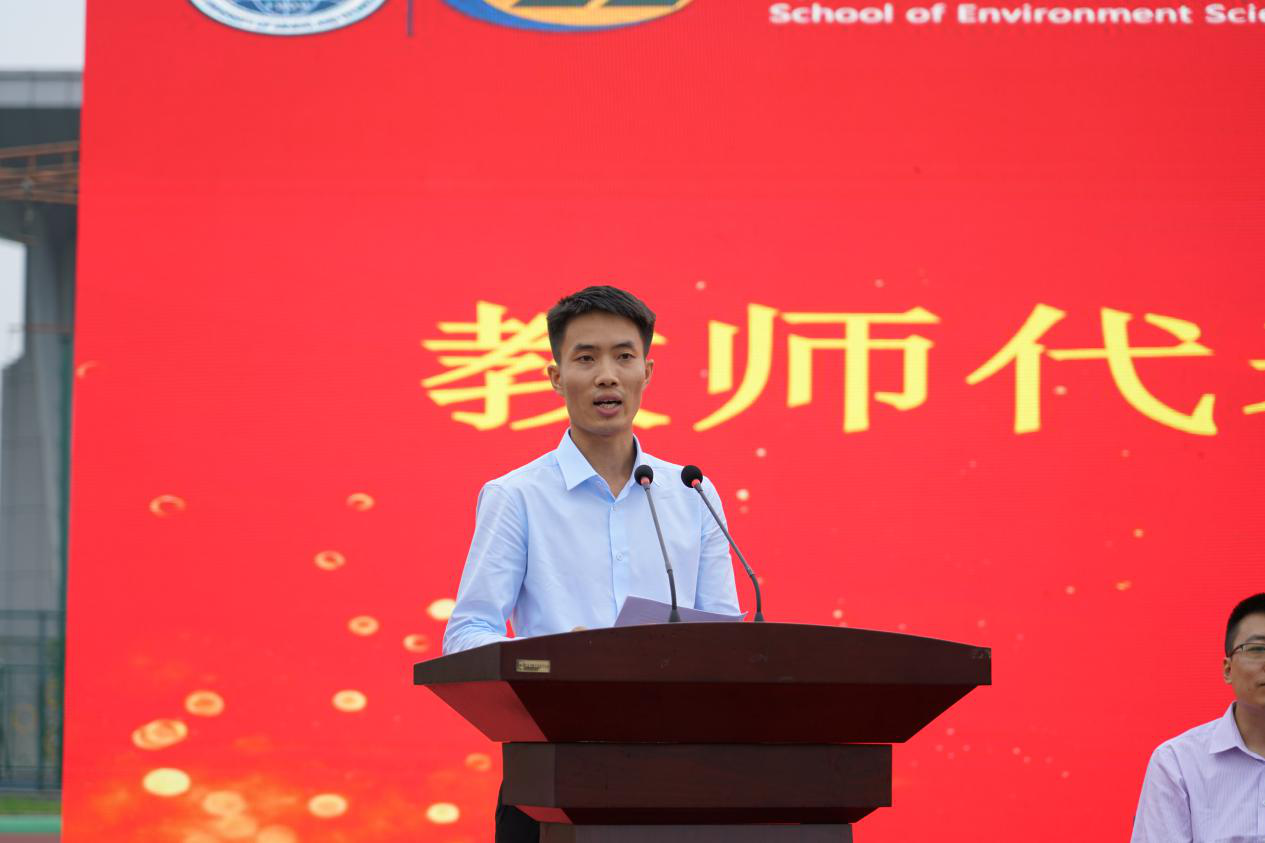 教师代表季力教授和时洪涛老师分别进行发言。季力教授指出,这是更适合读书的大时代,希望同学们秉承“好学力行”的优良学风,认真学习,用勤奋书写青春,让知识改变命运。时洪涛老师分别从刚毕业的学生、环测新教师、学院辅导员三种身份分享了自己的经历与感悟,并表示自己会与同学们一同前行,一起成长。