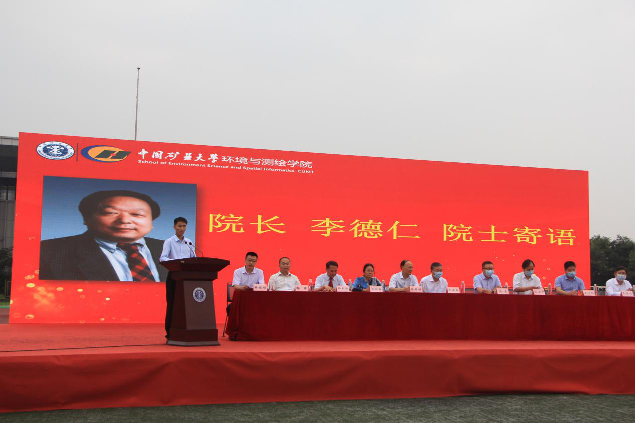 9月19日下午4时,我院2021级新生开学典礼在第二运动场举行,副校长卞正富,院党委书记王守刚,执行院长郑南山,国家教学名师高井祥,教授委员会主任汪云甲老师,能源与环境遥感大数据中心主任薛勇,院矿山生态修复教育部研究中心副主任王丽萍,副院长郭东、王潜心,党委副书记韩福顺和各专业老师,新生班主任及辅导员出席开学典礼。开学典礼由党委副书记韩福顺主持。