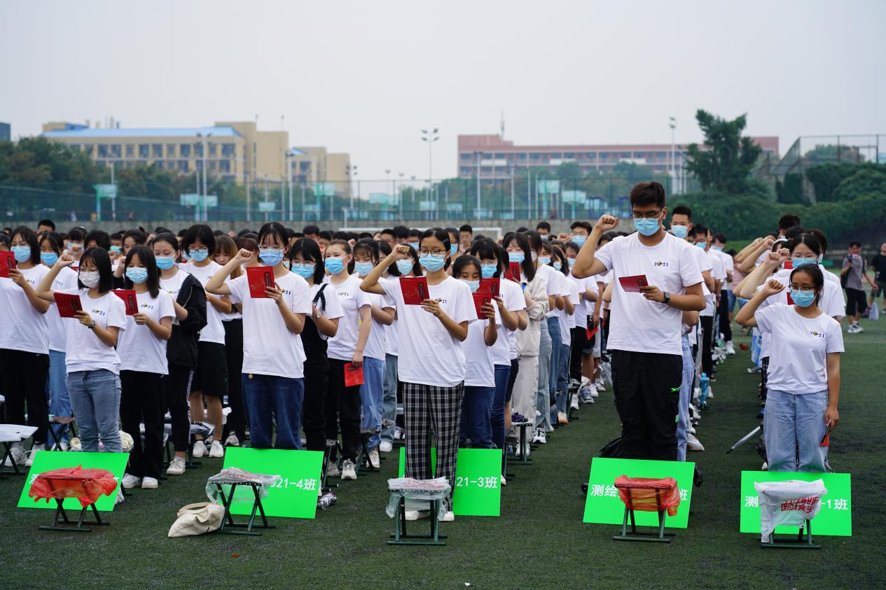 全体新生紧握右拳,激扬宣誓:“大学之道,明德亲民,修齐治平,止于至善。环测学子,祖国栋梁,入学之始,庄严宣誓……”,铿锵的誓言展现了环测学子意气风发、奋勇争先的精神面貌。