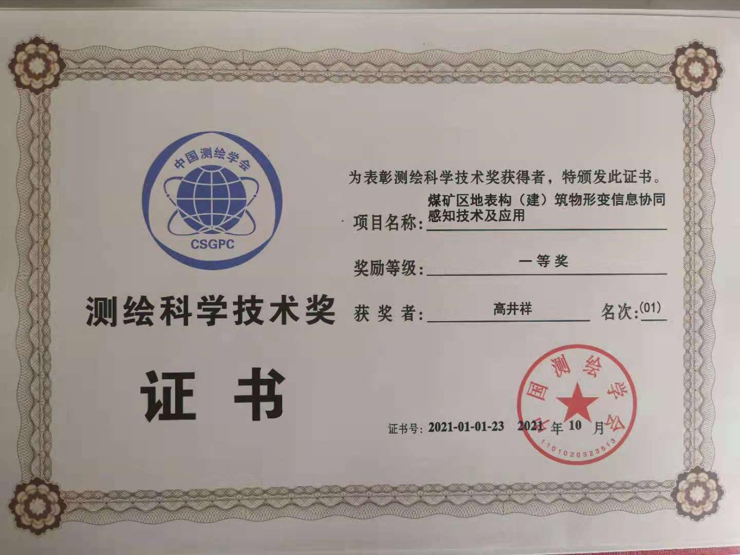 高井祥教授主持的项目“煤矿区地表构(建)筑物形变信息协同感知技术及应用”荣获2021年测绘科学技术奖一等奖。该项目面向现有矿区构建筑物形变监测方法存在的若干问题,利用GNSS技术与多源传感器,以全覆盖监测为目标,以理论研究做指导,以模型软件和硬件系统相结合为平台,构建了多源协同感知定位技术体系,研发了矿区典型构建筑物监测软硬系统,攻克了高精度观测信息融合定位存在的若干关键技术问题:提出了多星座协同精密定位、惯性增强的高频感知、多源传感器协同感知等技术,解决了矿区GNSS监测可靠性、煤矿区开采条件下高频变形监测、地表建筑物隐蔽空间微变形监测等问题。项目成果在矿区边坡监测、地面建筑物监测、井塔/筒监测等方面得到了广泛应用。