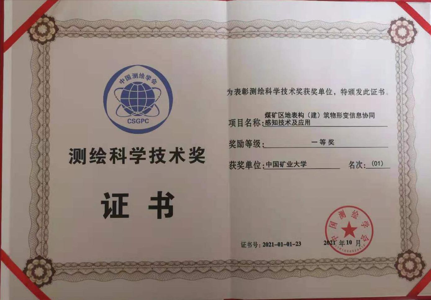 李增科副教授领取2021年度测绘科学技术奖一等奖