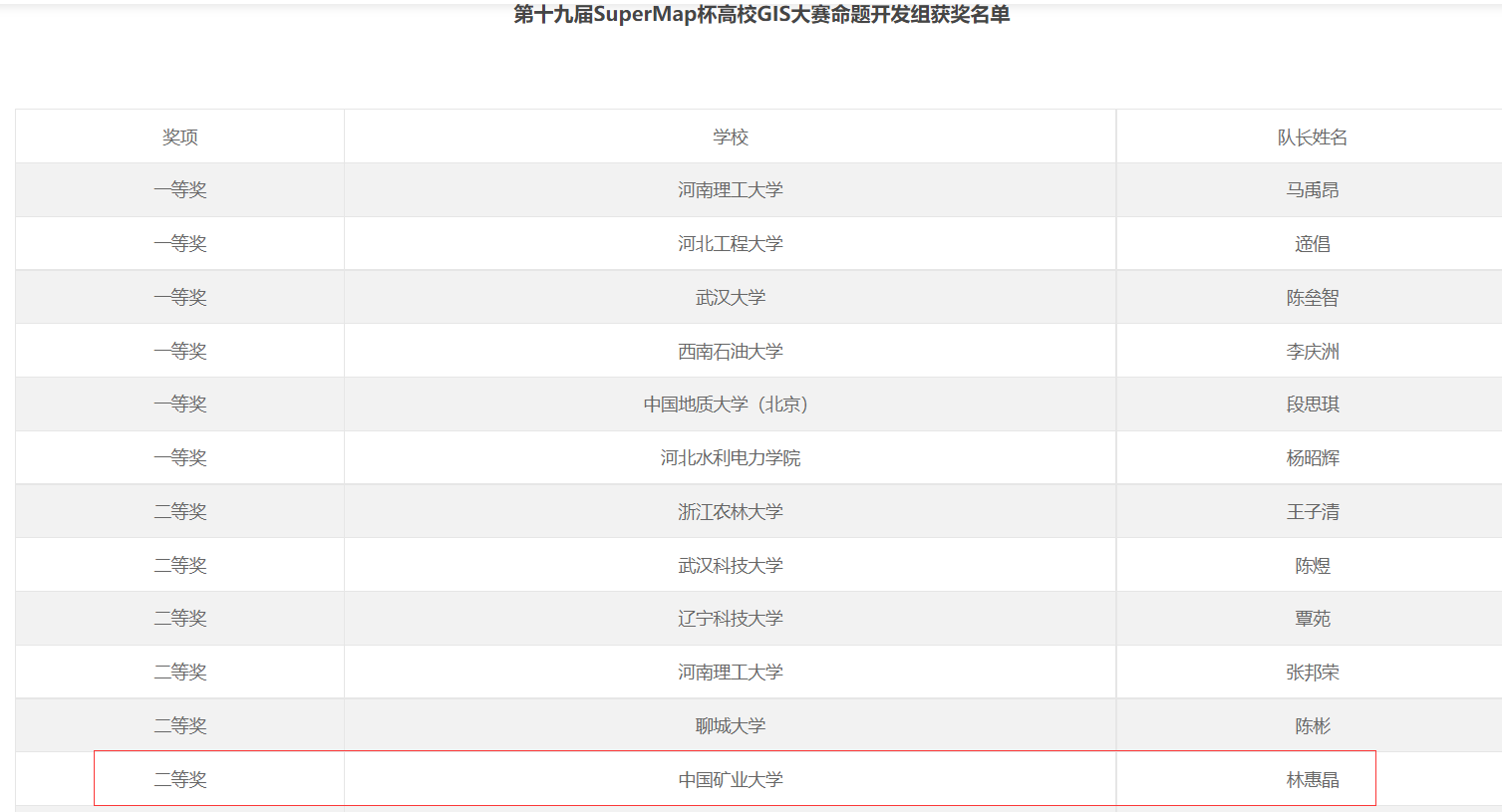 获奖名单