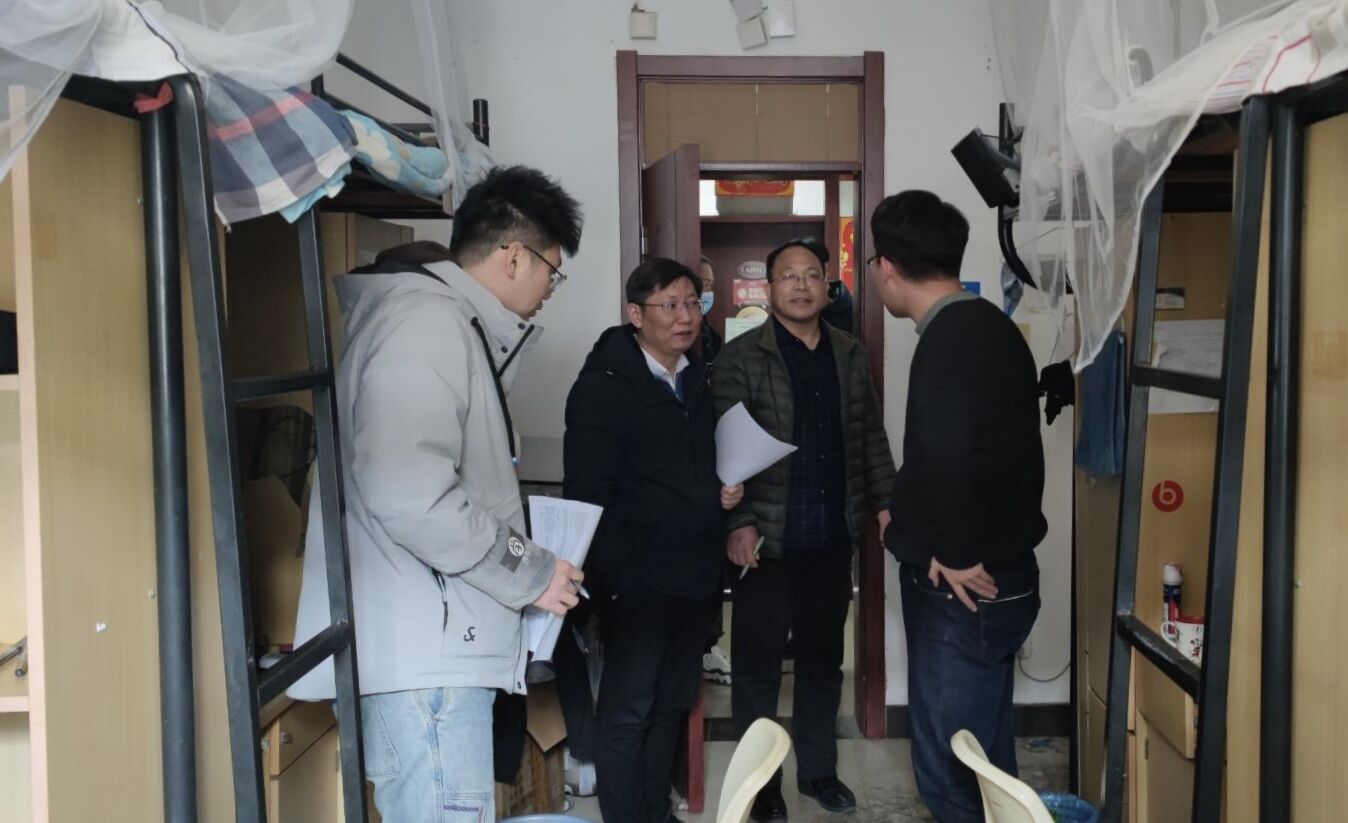 在本科生宿舍区,韩福顺副书记和各年级辅导员逐楼层走进学生宿舍,对宿舍安全、卫生状况进行检查,他嘱咐同学们疫情防控期间要遵守学校的相关规定,做好卫生消毒与个人防护。各位辅导员老师也在检查中询问学生近期学习生活情况,对同学们的日常生活状态有了深入了解。在检查研究生宿舍时,王潜心副院长同小宝寻花