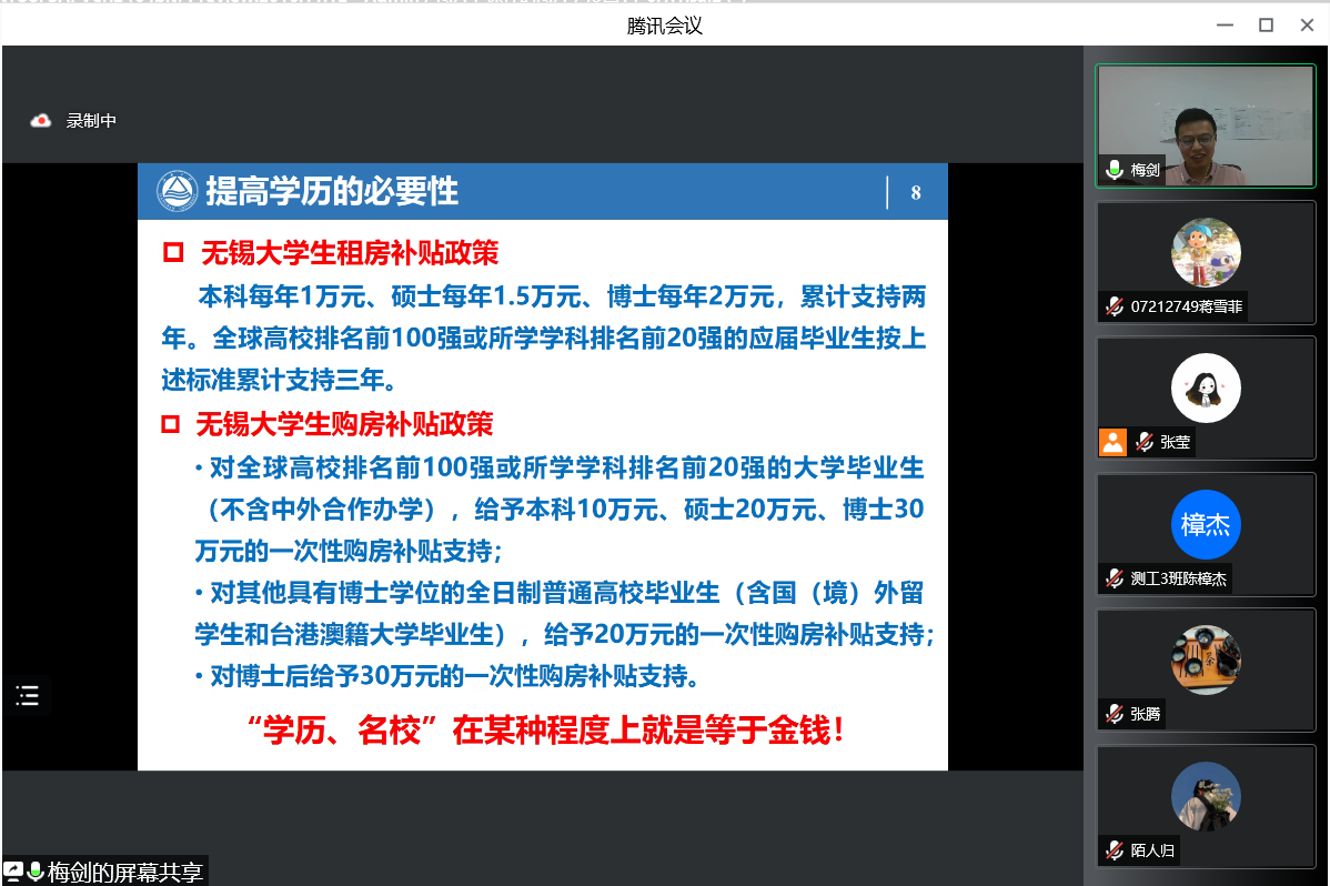 6月2日晚7点,张馨方结合个人经历讲述了大学生应该如何选择自己的就业方向,并深入分析了在竞争力日益激增的今天应选择适合自己的方式去实现人生目标。梅剑向同学们阐述了在“内卷”时代,提升自己的核心竞争力是破局之道。杜雷建议同学们应找准目标、合理定位、持之以恒,在专业课学习上投入更多的时间精力。讲座最后,四位校友耐心地为同学们解答疑惑,并为同学们的大学生活和未来发展提供了有益建议。