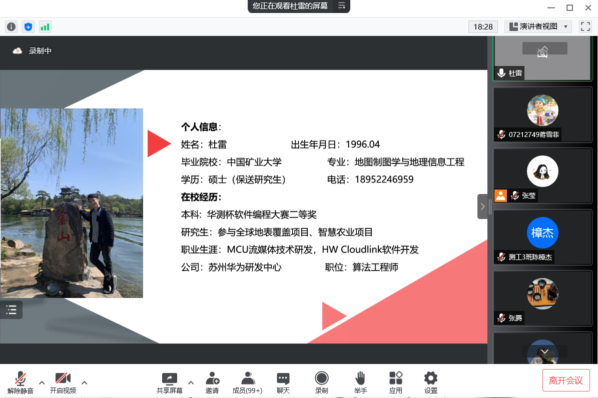 2018届地理信息科学专业校友杜雷主讲
