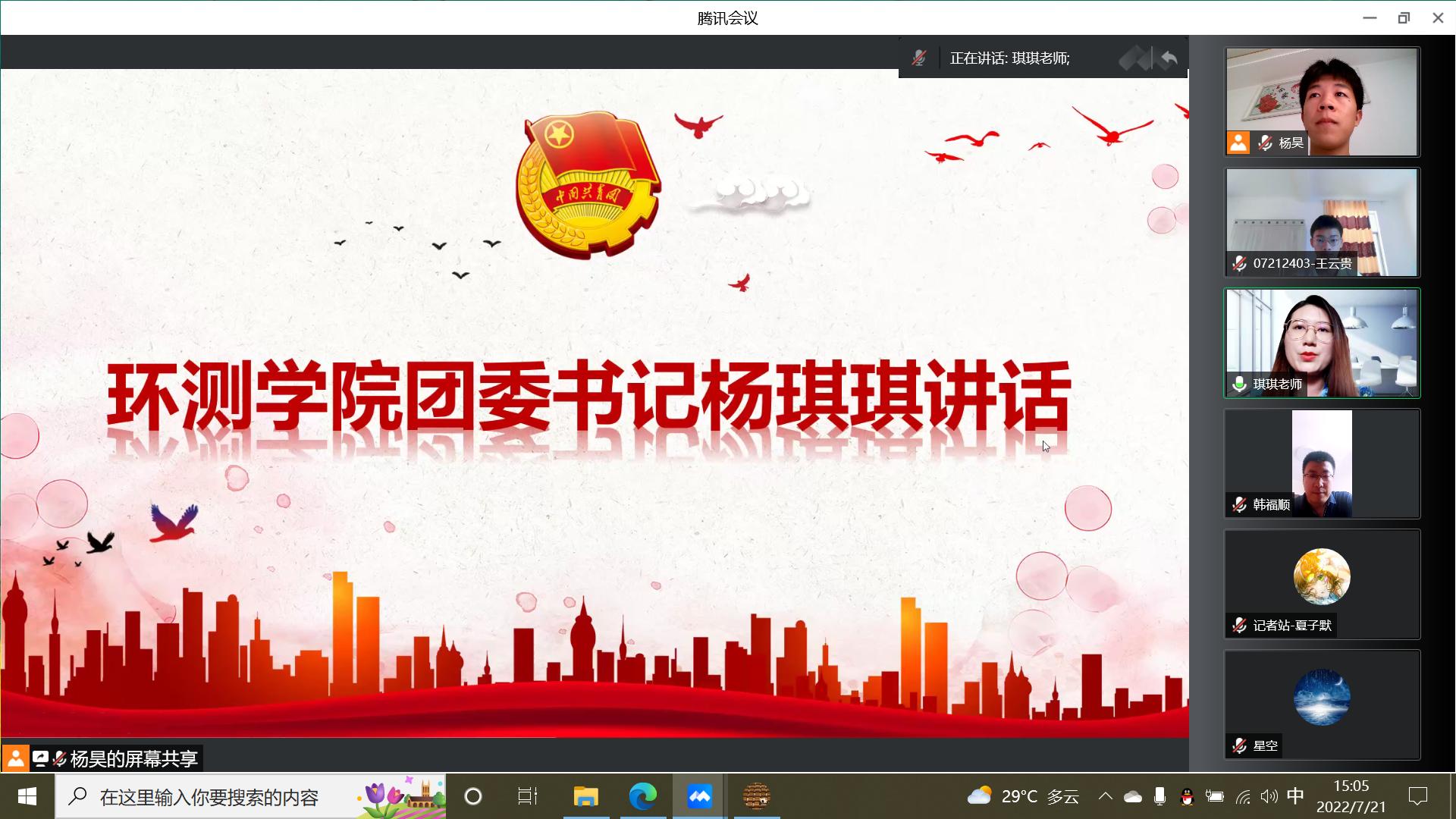 2022年暑期社会实践报告培训会在线上召开。学院党委副书记韩福顺、团委书记杨琪琪出席了本次培训会,会议由学生代表杨昊主持。