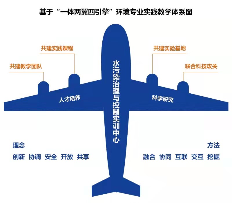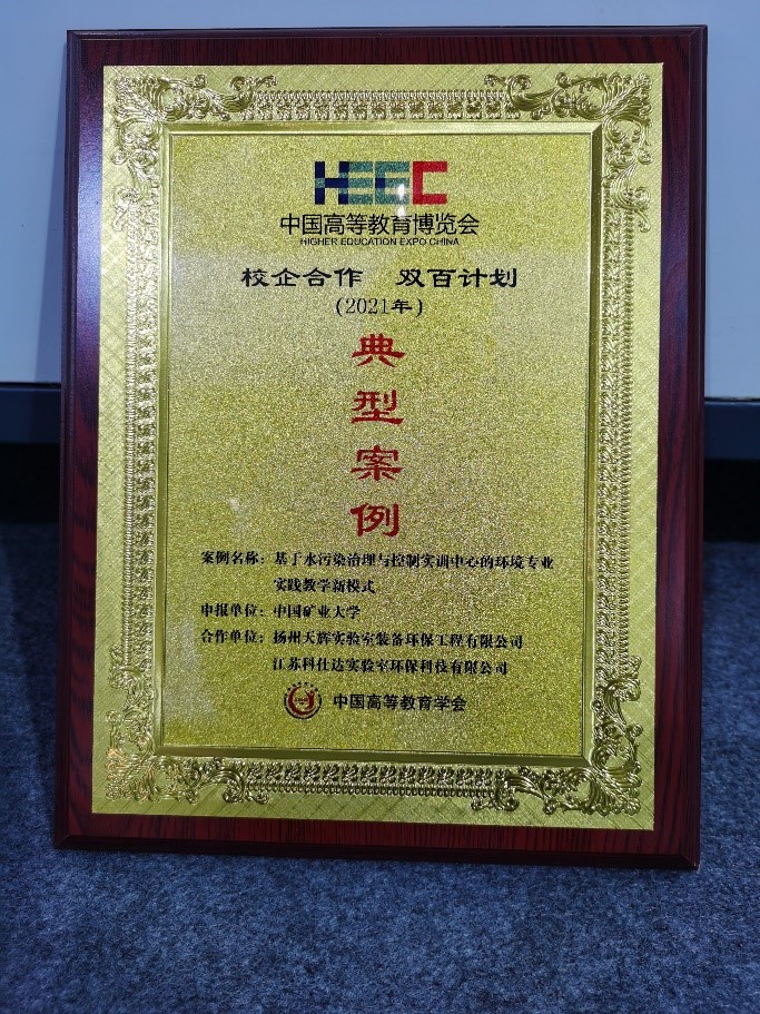 2021年9月,按照中国高等教育学会《关于启动2021年度中国高等教育博览会“校企合作 双百计划”工作的通知》通知要求,学院联合扬州天辉实验室装备环保工程有限公司、江苏科仕达实验室环保科技有限公司共同申报了“基于水污染治理与控制实训中心的环境专业实践教学新模式”典型案例。该案例于2019年10月启动,2021年10月完成。历时两年多的时间,双方聚焦环境类专业人才培养、聚焦环保企业科技创新,坚持创新、协调、安全、开放、共享的发展理念,围绕持续创新、融合发展的合作目标,以水污染治理与控制实训中心为一体,以人才培养、科学研究为两翼,通过共建教学团队、共建实践课程、共建实验基地、联合科技攻关四个引擎,建立了“一体两翼四引擎”环境专业实践教学体系,深入推进水污染治理与控制实训中心在人才培养和实践创新中的作用,取得了系列成果。