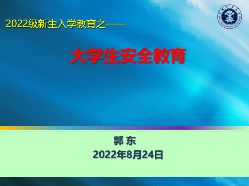 8月24日9时,学院新生安全教育宣讲会在线上举行,宣讲会由学院行政副院长郭东主讲。郭东副院长从生命安全、财产安全、消防安全、交通安全、人身安全、国家安全等方面做出提醒,对安全常识进行讲解,并通过安全案例对新生们做了形象的解说。他提醒新生一定要保护好自己的生命和财产安全,遇到任何问题都可以联系辅导员及学院老师,学院将会尽全力保障大家的安全。