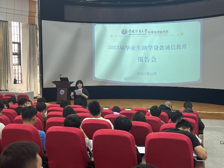 于6月6日14:30在学院楼B109报告厅开展了2023届毕业生诚信报告会。本次会议由院学工办主任于海霞主持,研究生辅导员杨政军出席,2023届贷款本科生及研究生参加。