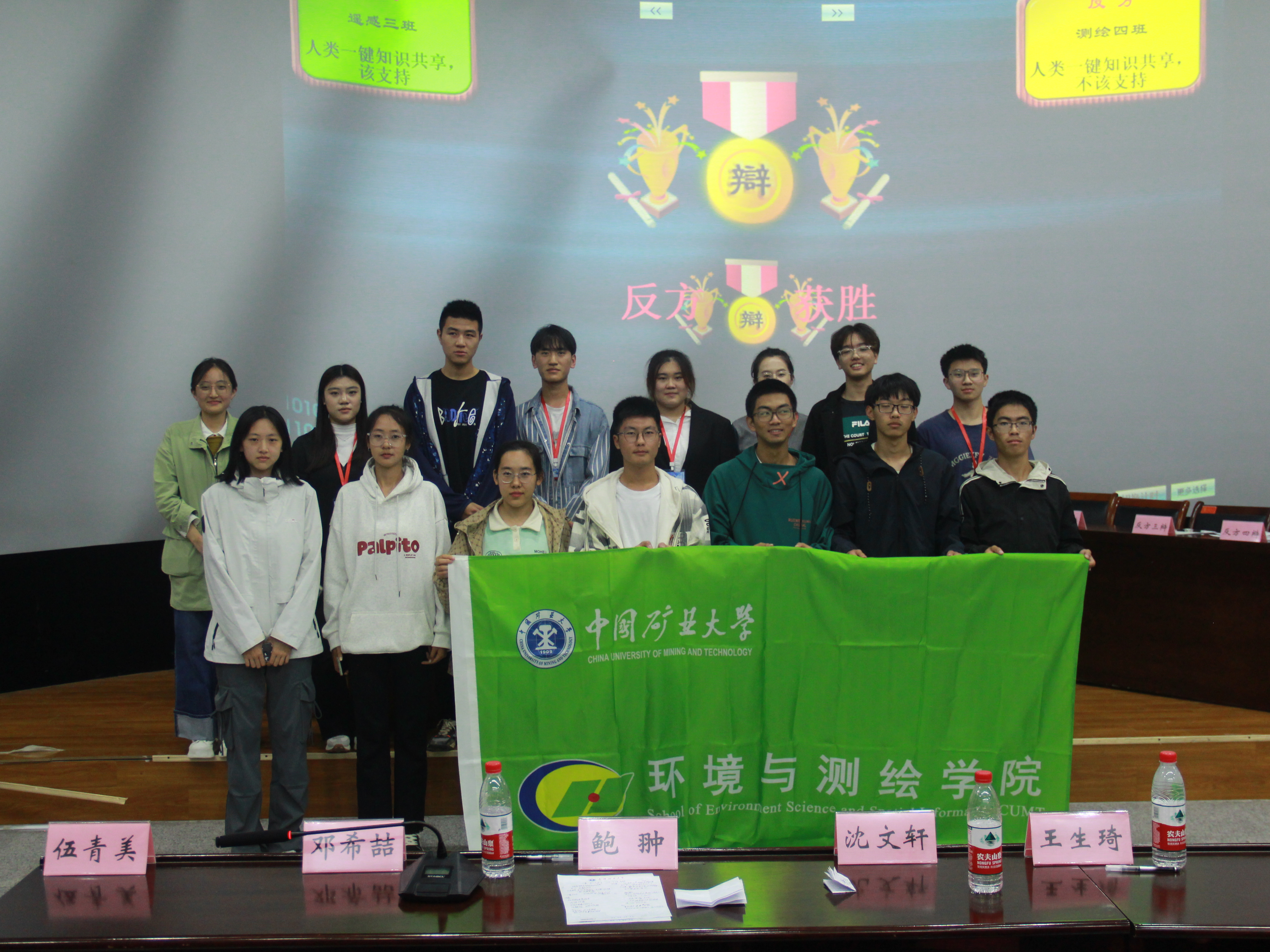 晚上7时,辩论赛正式开始,双方选手围绕主题,展开了激烈而精彩的辩论。首先,双方一辩就“知识一键共享与否”这一话题进行了精彩的立论,力求在表明观点的同时,为之后的辩论打下基础。在自由辩环节中,双方辩手积极发现并抓住对方的逻辑漏洞,据理力争,力求驳倒对方的观点。在辩论赛最后,由双方四辩对辩题进行了总结陈词。辩论结束后,评委们根据选手的辩论技巧、逻辑思维、语言表达和团队合作等方面进行评分。最终,经过激烈角逐,测绘类4班获得了本次辩论赛的冠军,他们的深入思考和精彩的辩论表现给评委们留下了深刻的印象。