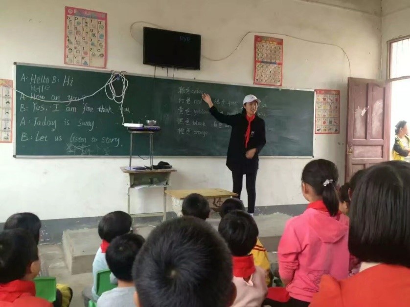 201610月,她开始了人生的第一次支教,虽然只是短短几天,却给她以后的人生带来了很大的改变。她和社团的小伙伴们去到的是安徽省涡阳县的一所山村小学,给贫困地区的孩子们带去VR博物馆设备,送上教学生活必需品,并向孩子们传授一些基础知识,激励他们好好读书,期待他们成人成才。在和孩子们的交流过程中,孩子们清澈的眼神,还有对外面世界大大的疑问都让她更加想要把自己的所见所闻所感分享给孩子们。也是从那时起,她在心底给自己一个期许:以后一定要用更长的时间来进行支教。