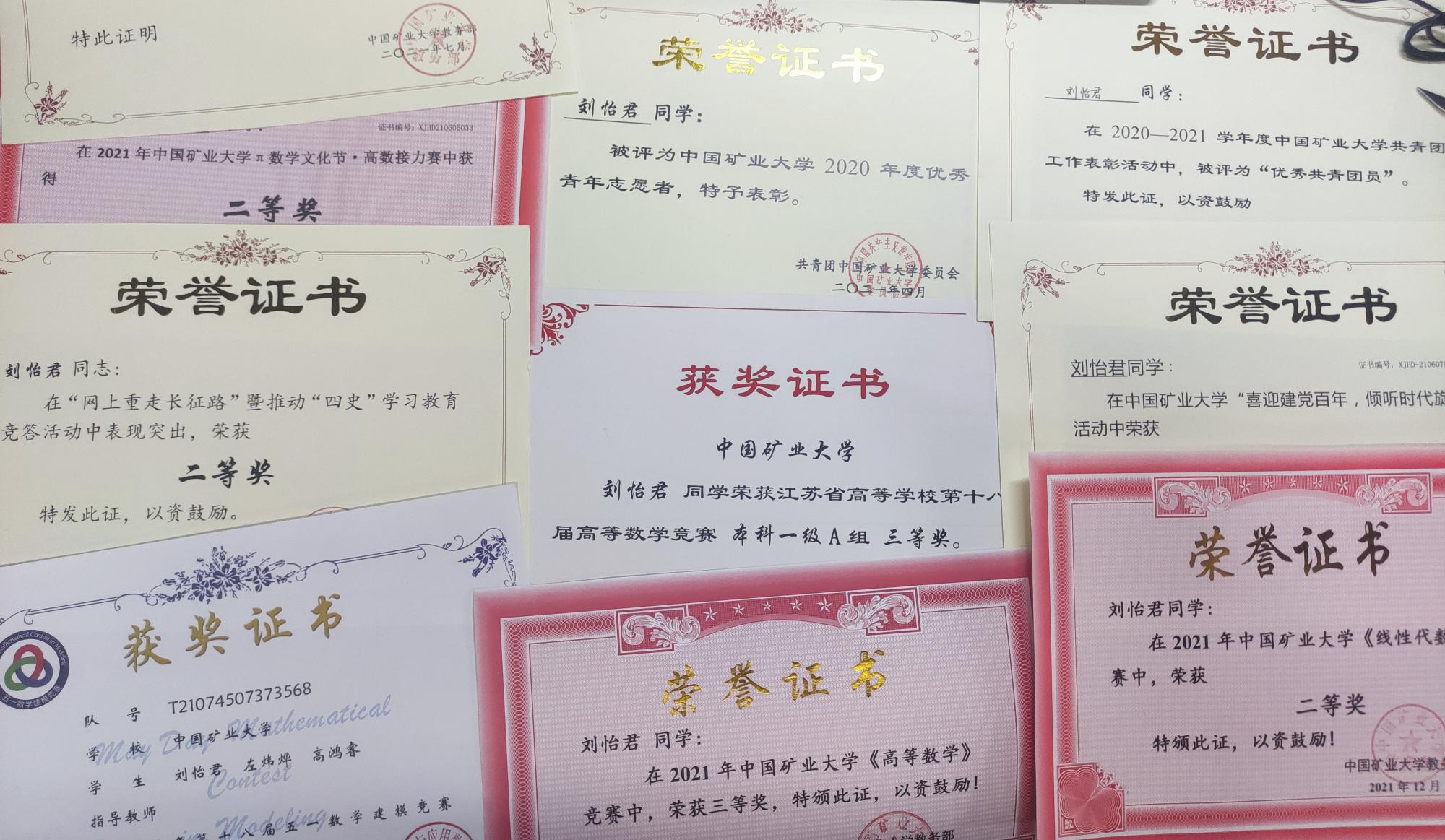 高等数学竞赛三等奖等竞赛奖项也收入囊中。