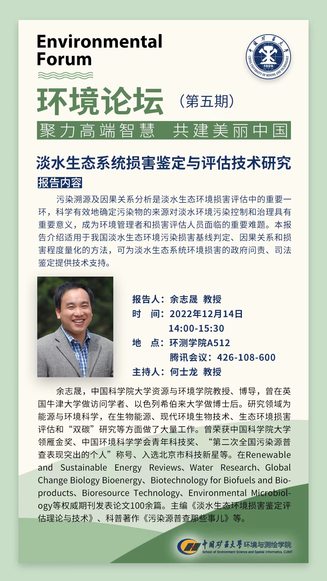 环境论坛(第五期)淡水生态系统损害鉴定与评估技术研究