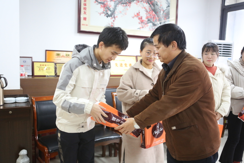 学院工会主席刘汉湖为学生发放冬衣