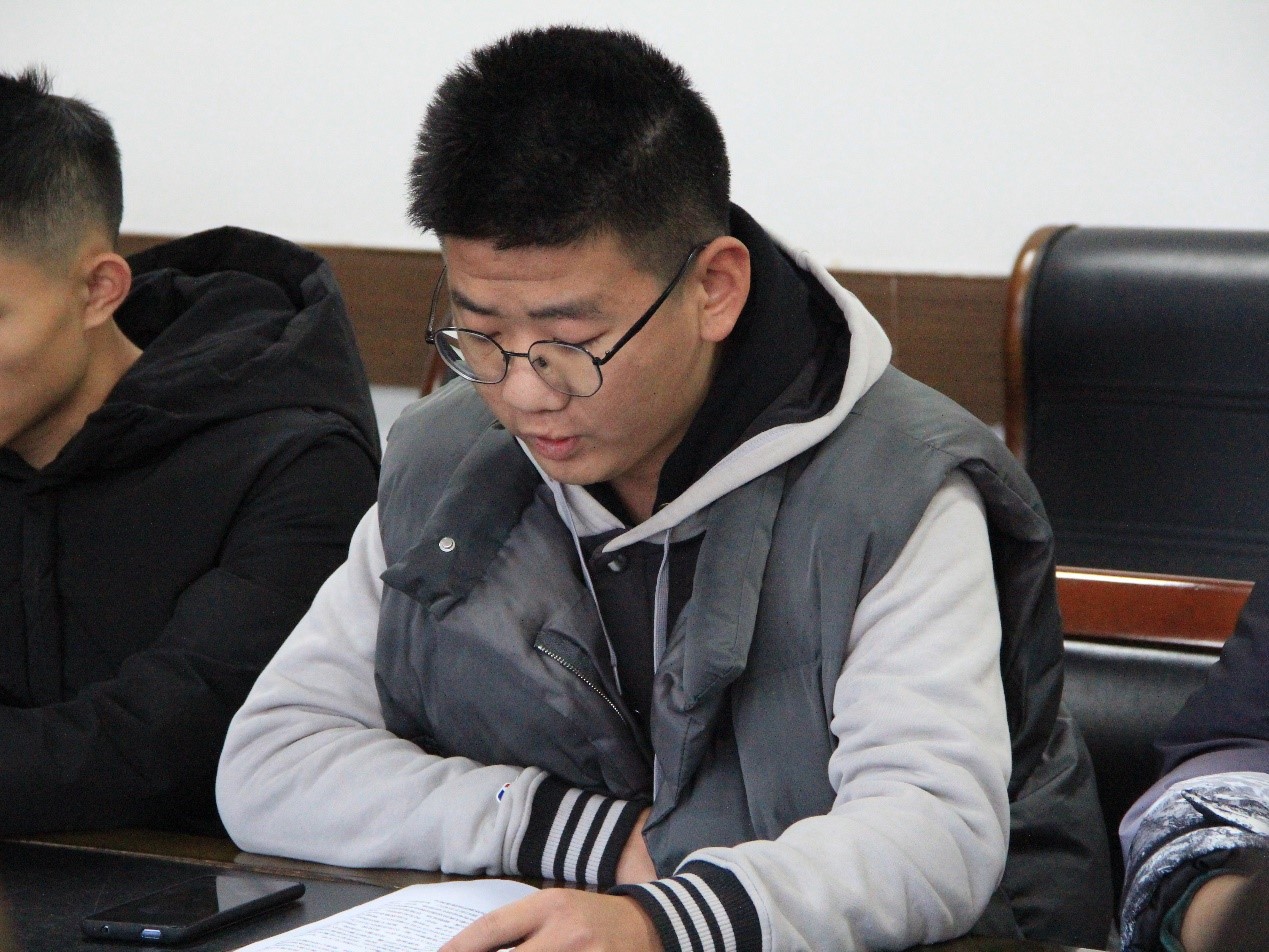 寒衣发放过程中,各位领导为申请补助的15名学生分发补助物资,并鼓励同学们在大学生活中要勤奋好学、努力成长成才,这充分拉近了师生之间的距离。随后,环境20-1班的时培庆同学作为学生代表发言,他首先对学院领导老师表示了感谢,并表示:“来到矿大,来到环测,是我无悔的选择。”其他受补助学生也依次就进校以来自己的经历和成长表达了自己的所思所想。