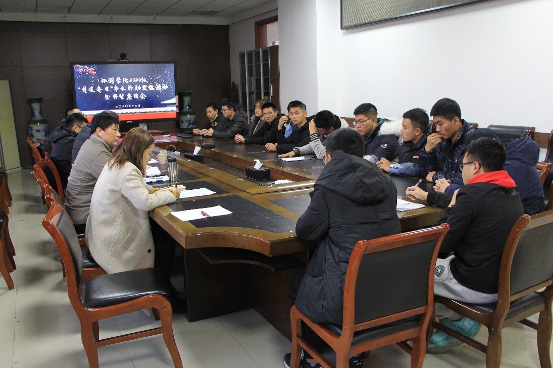 在学院楼A506举行了“情暖冬日”寒衣补助发放活动暨师生座谈会。学院关工委常务副主任邱慎耕、行政副院长郭东、党委副书记韩福顺以及20级15名学生参加了此次活动。本次活动由小宝寻花